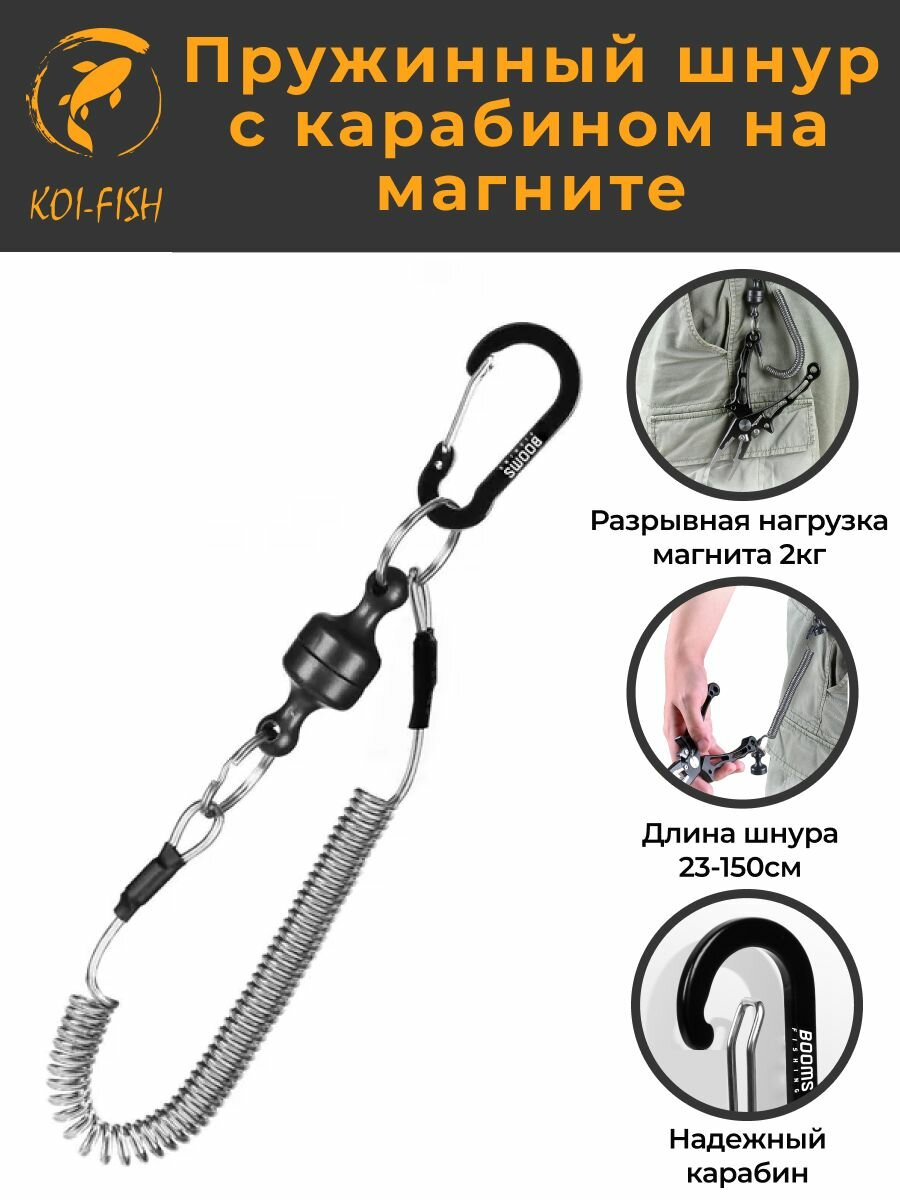 10 цен на Профессиональный Пружинный шнур с карабином на магните 150 см, чёрный (Пружинный_шнур_магнит_Booms_чёрный)