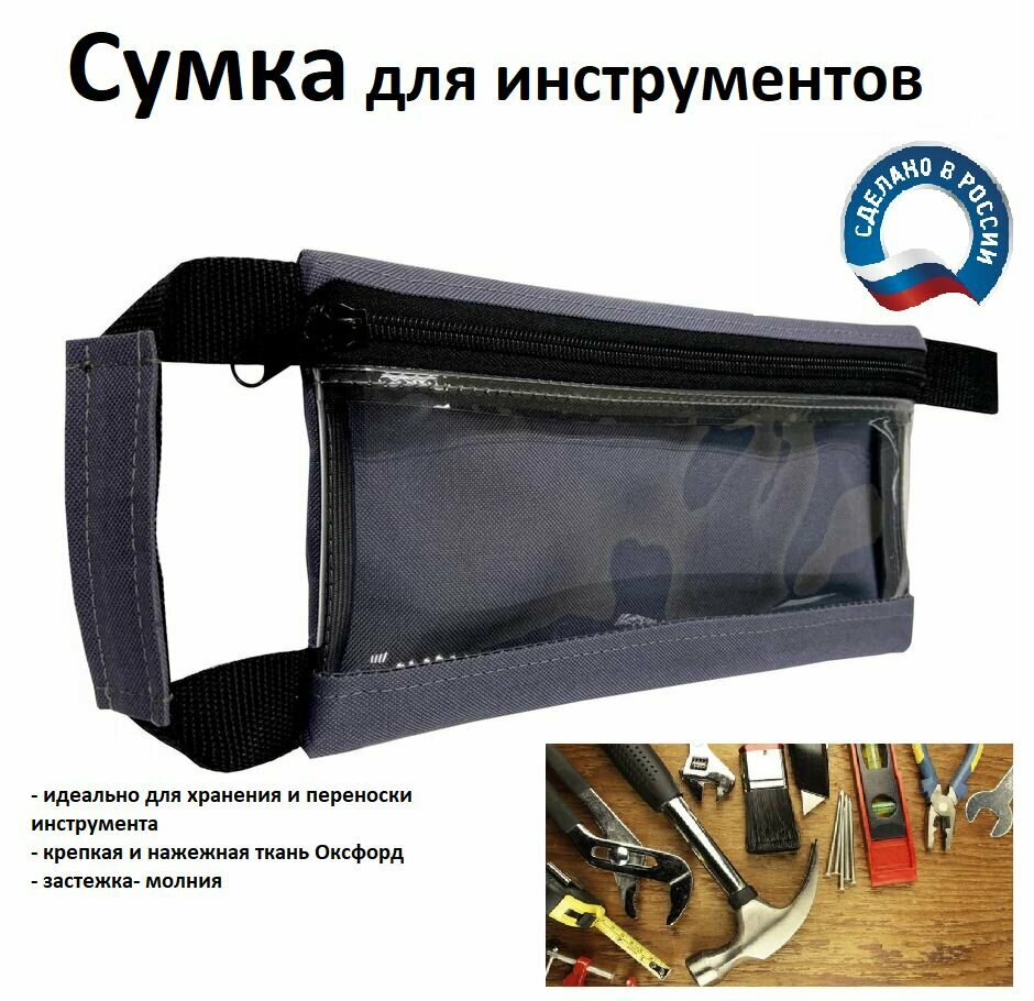 Отзывы на Сумка для инструментов- карман 26x15см( Оксфорд), темно-серая, с прозрачной стенкой, с ручкой.
