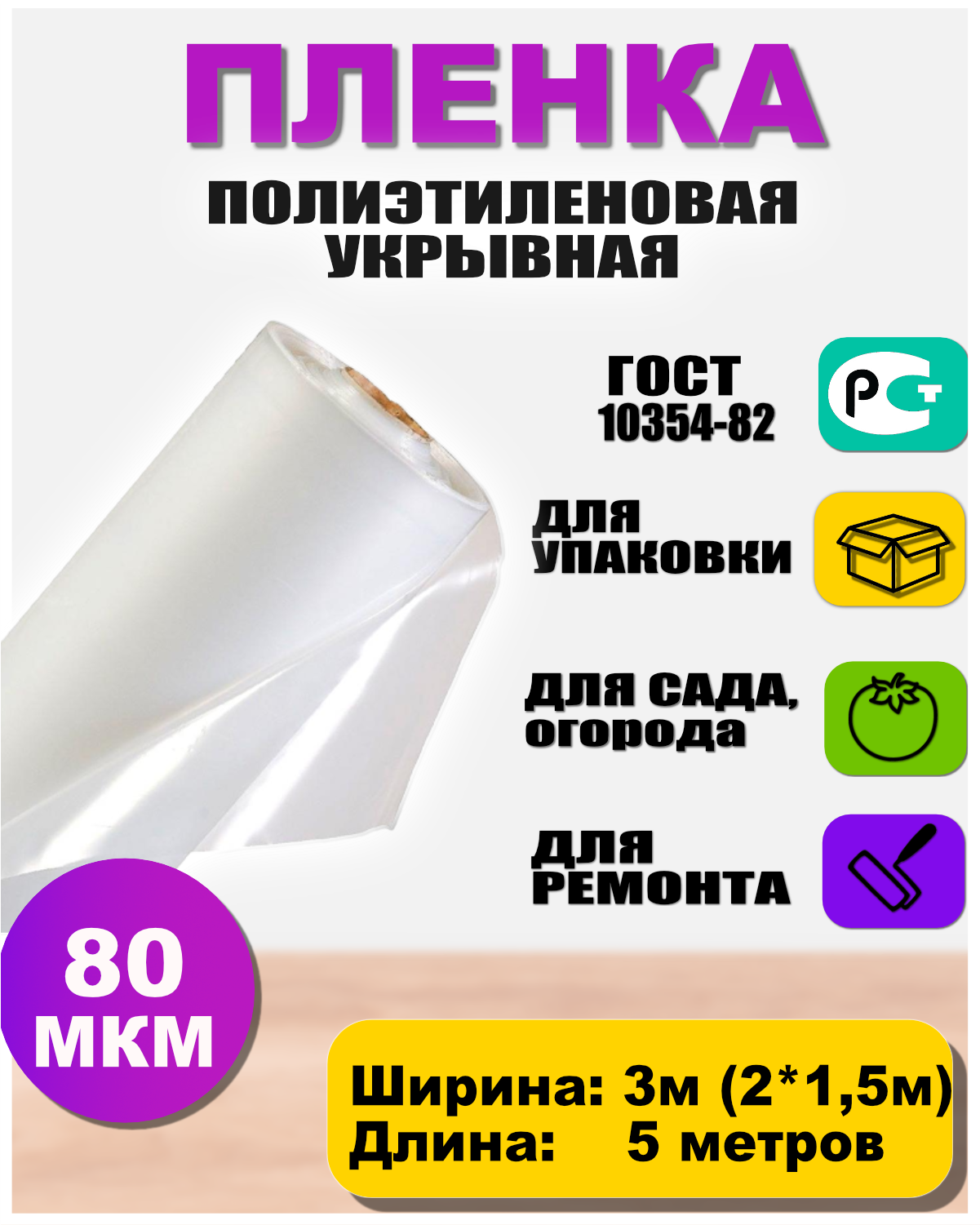 Пленка полиэтиленовая 80мкр 3*5 метров (рукав 3м сложен в 2 раза) информация: