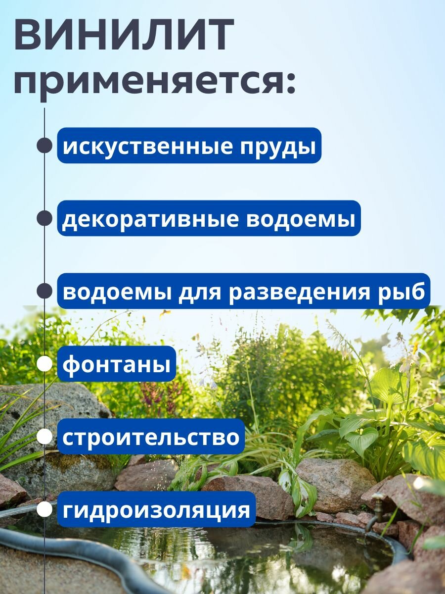 Отзывы на Пленка винилит, 2,5х1 м, толщина 1 мм, для пруда и бассейна, для гидроизоляции
