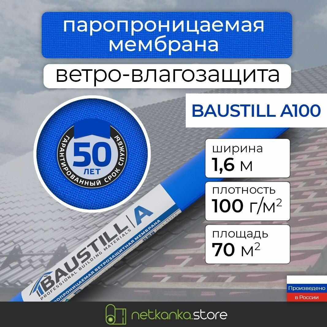Отзывы на Ветро-влагозащитная мембрана Baustill A100 паропроницаемая (плотность 100г/м, площадь 35м2)