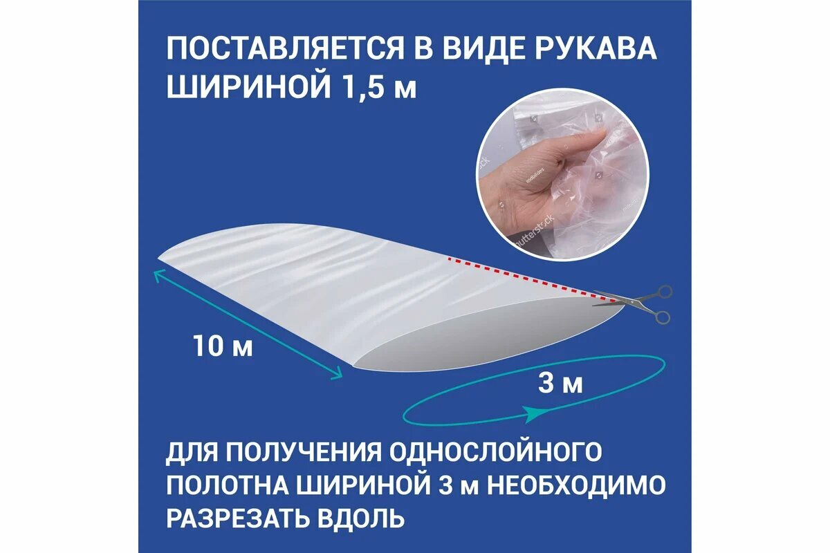 Пленка полиэтиленовая ГОСТ 200 мкм 3*10 метров (рукав 3м сложен в 2 раза) садовница укрывная для теплиц и парников / строительная / защитная