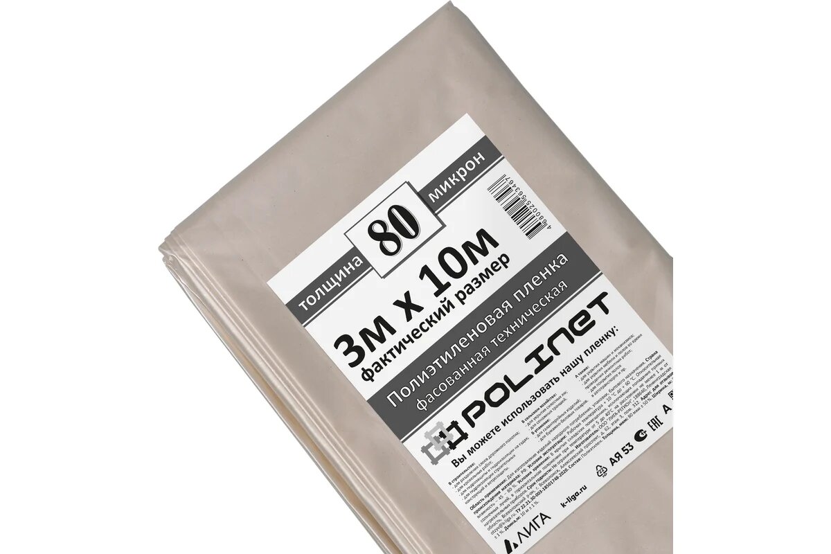 Polinet Пленка полиэтиленовая ПВД техническая 3x10 м, 80 мкм, 0,8 кг 190173 информация: