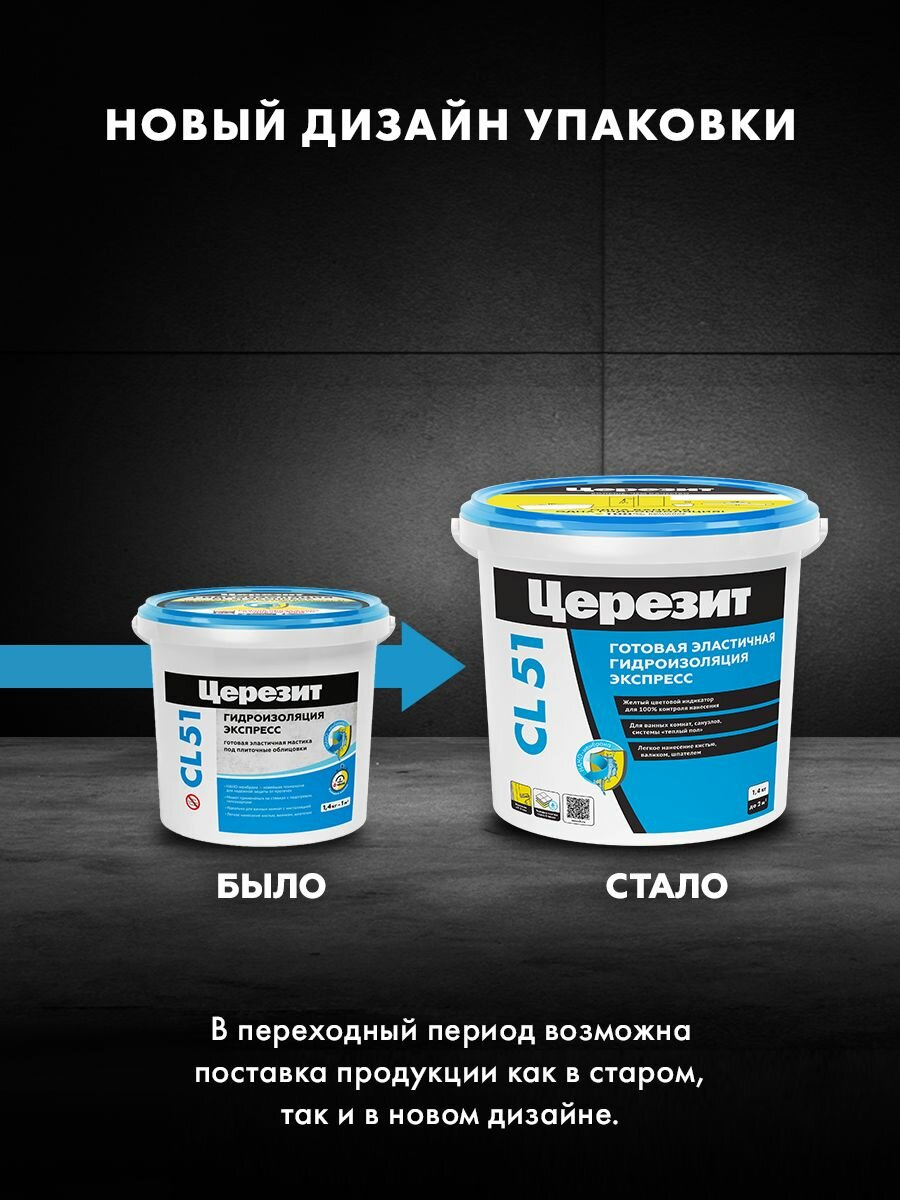 Гидроизоляция эластичная полимерная Церезит CL51, фасовка 1,4 л информация:
