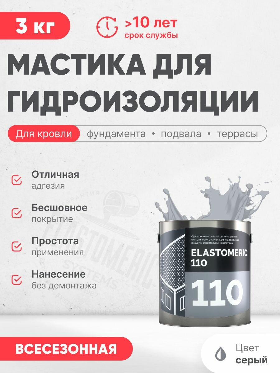10 цен на Жидкая резина для гидроизоляции кровли Elastomeric 110 (серая, 3кг)