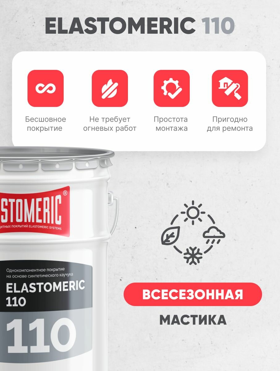 Гидроизоляция для бетона, фундамента и плоской кровли ELASTOMERIC 110 мастика гидроизоляционная однокомпонентная - жидкая резина для кровли базовый слой 8 199 ₽