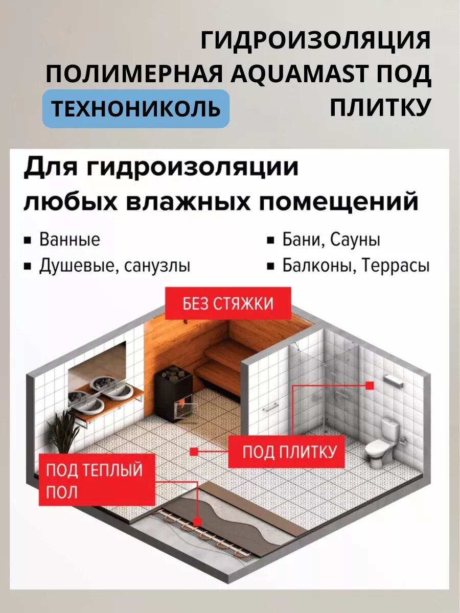 Гидроизоляция Технониколь AquaMast, полимерная, для ванных комнат, под плитку, 5кг информация: