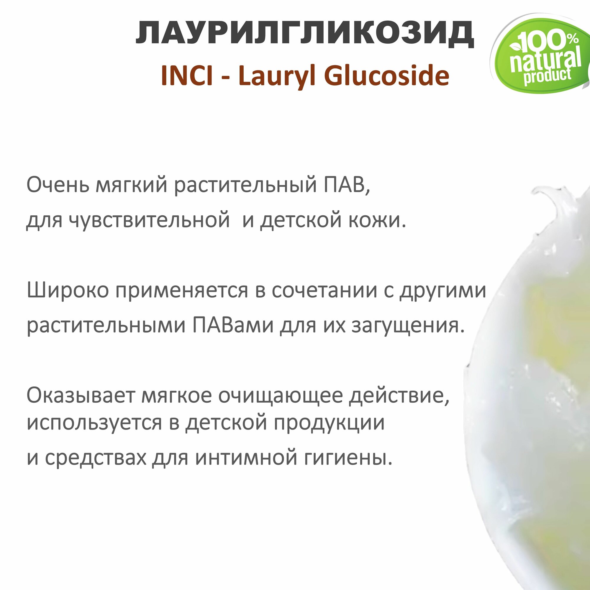 Лаурилгликозид, ПАВ, Lauryl Glucoside - 1 кг информация:
