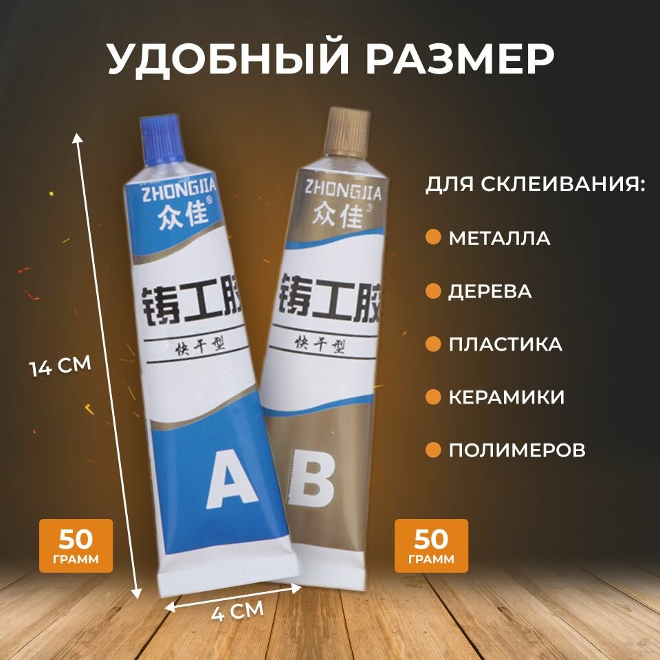Эпоксидный клей двухкомпонентный ZHONGJIA AB для металла, холодная сварка, 100 г информация: