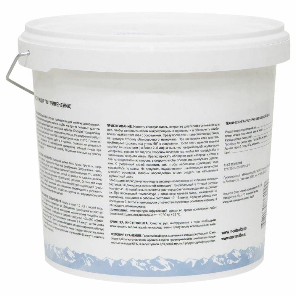10 цен на Монте альба клей для изделий из гипса (4кг) / MONTE ALBA клей для изделий из гипса белый (4кг)