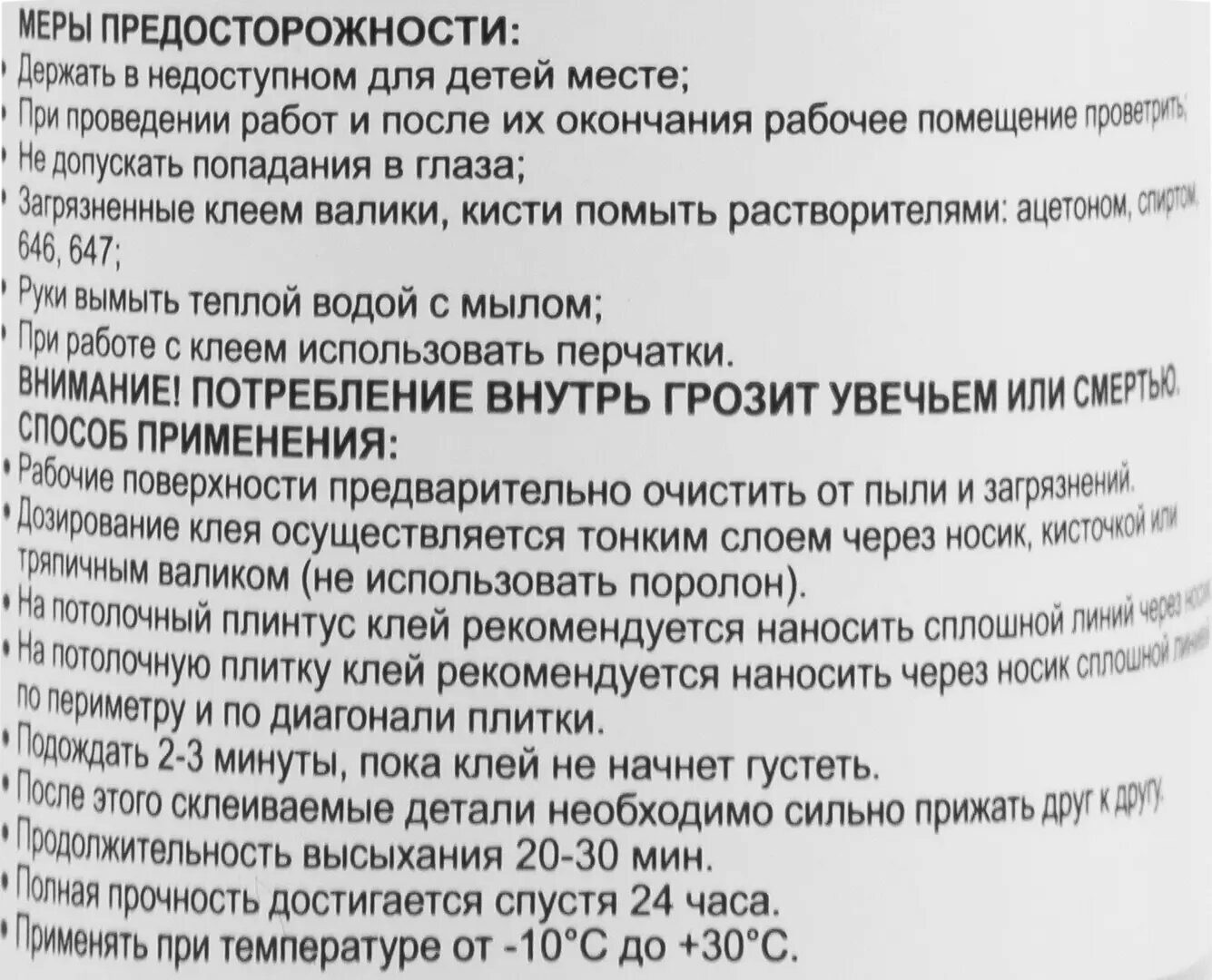 Клей для потолочных изделий MK полимерный 0.2 л информация: