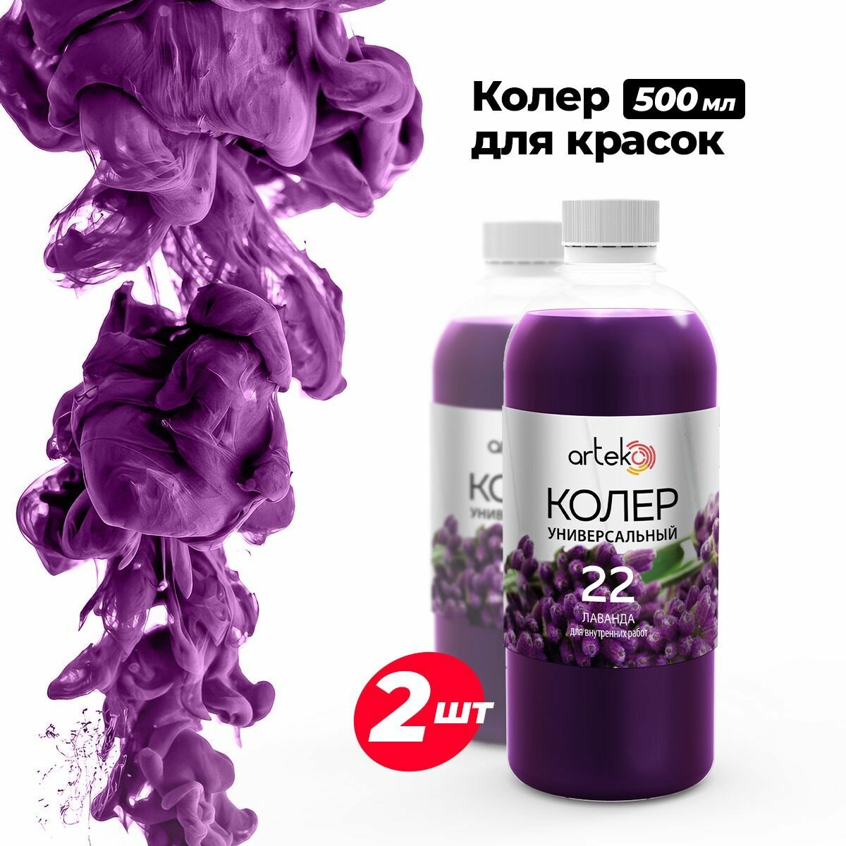 Универсальная колер-паста "Лаванда", 500 мл - 2 шт комплект Arteko информация: