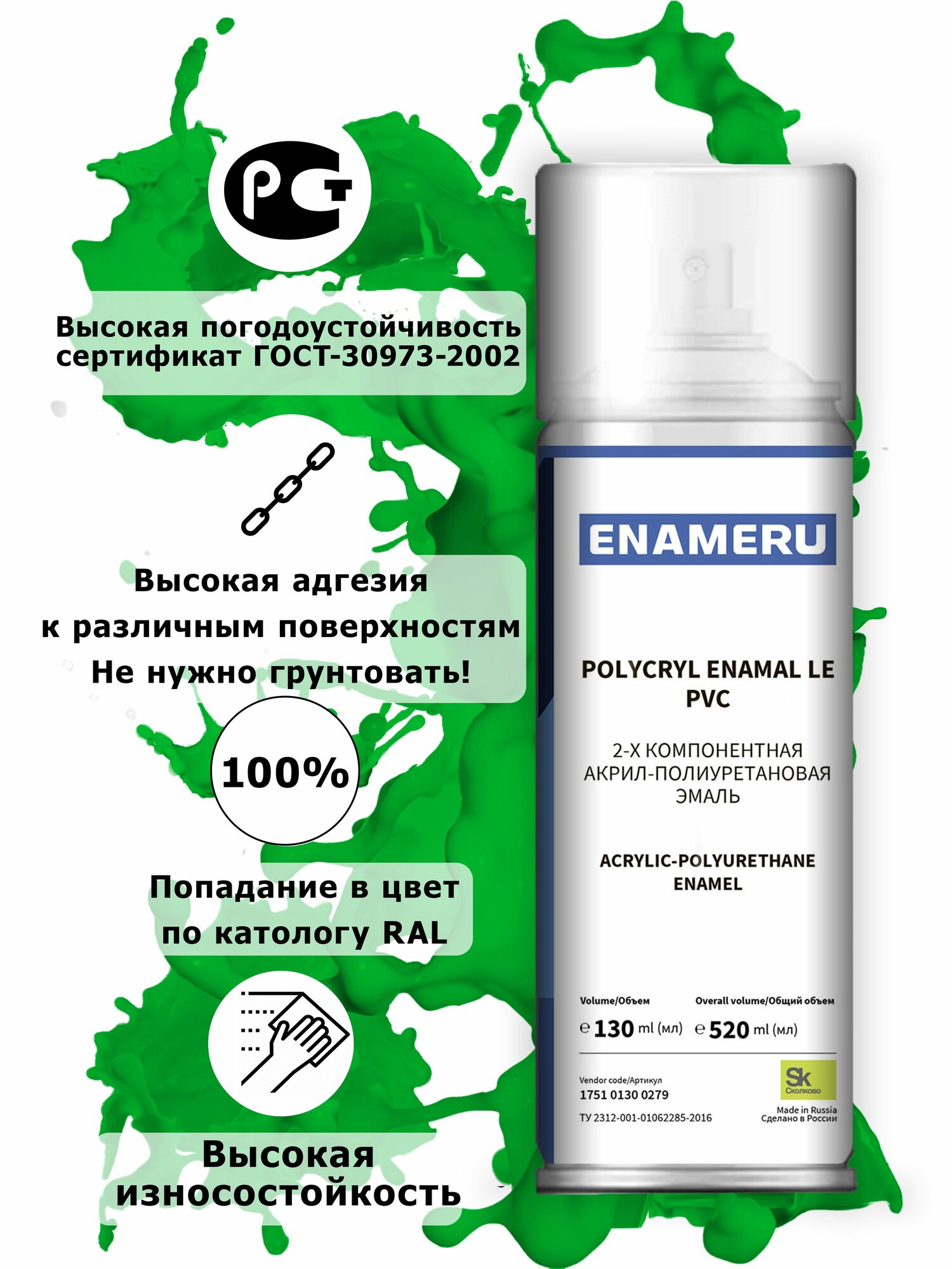 Аэрозольная краска для ПВХ, Пластика Энамеру, Полуматовая, Флуоресцентный зеленый RAL 6038, 0.52л информация: