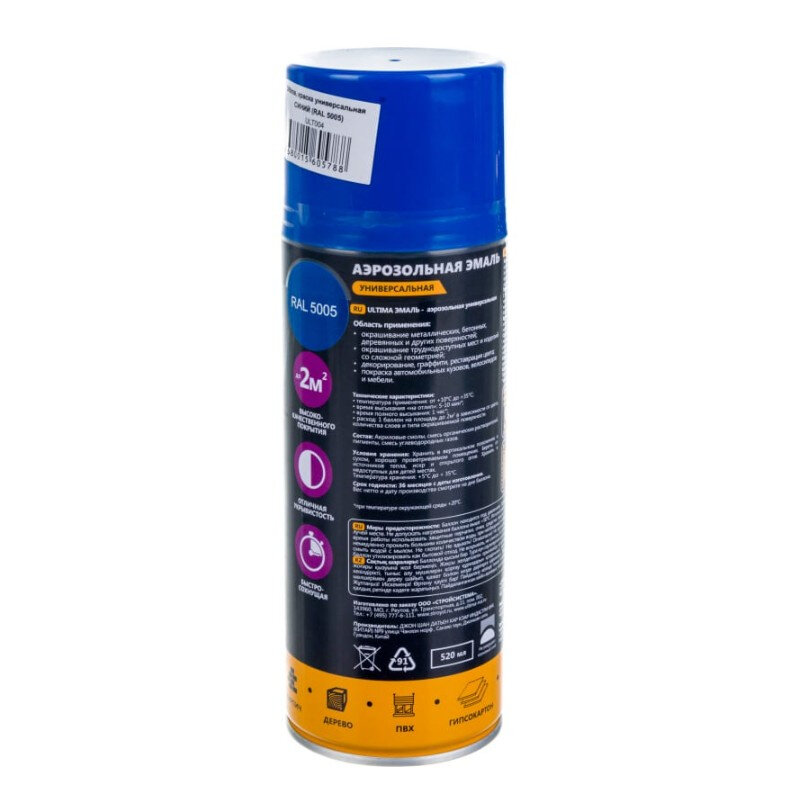 Эмаль аэрозольная ULTIMA ULT004 RAL 5005 акриловая, универсальная, синий, 520 мл информация: