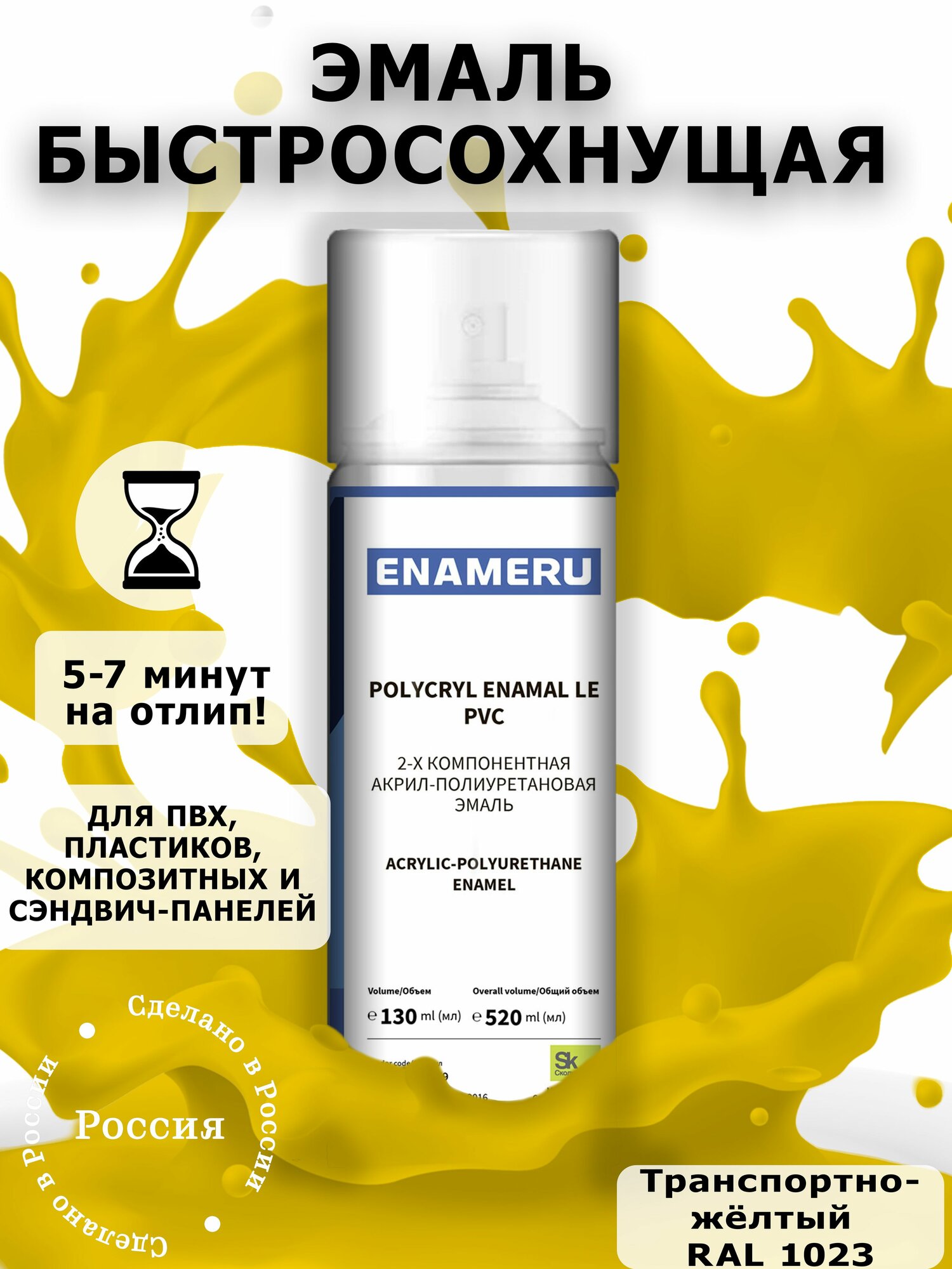 Аэрозольная краска для ПВХ, Пластика Энамеру, Акрил-полиуретановая, Полуматовая, Транспортно-жёлтый RAL 1023, 0.52л информация:
