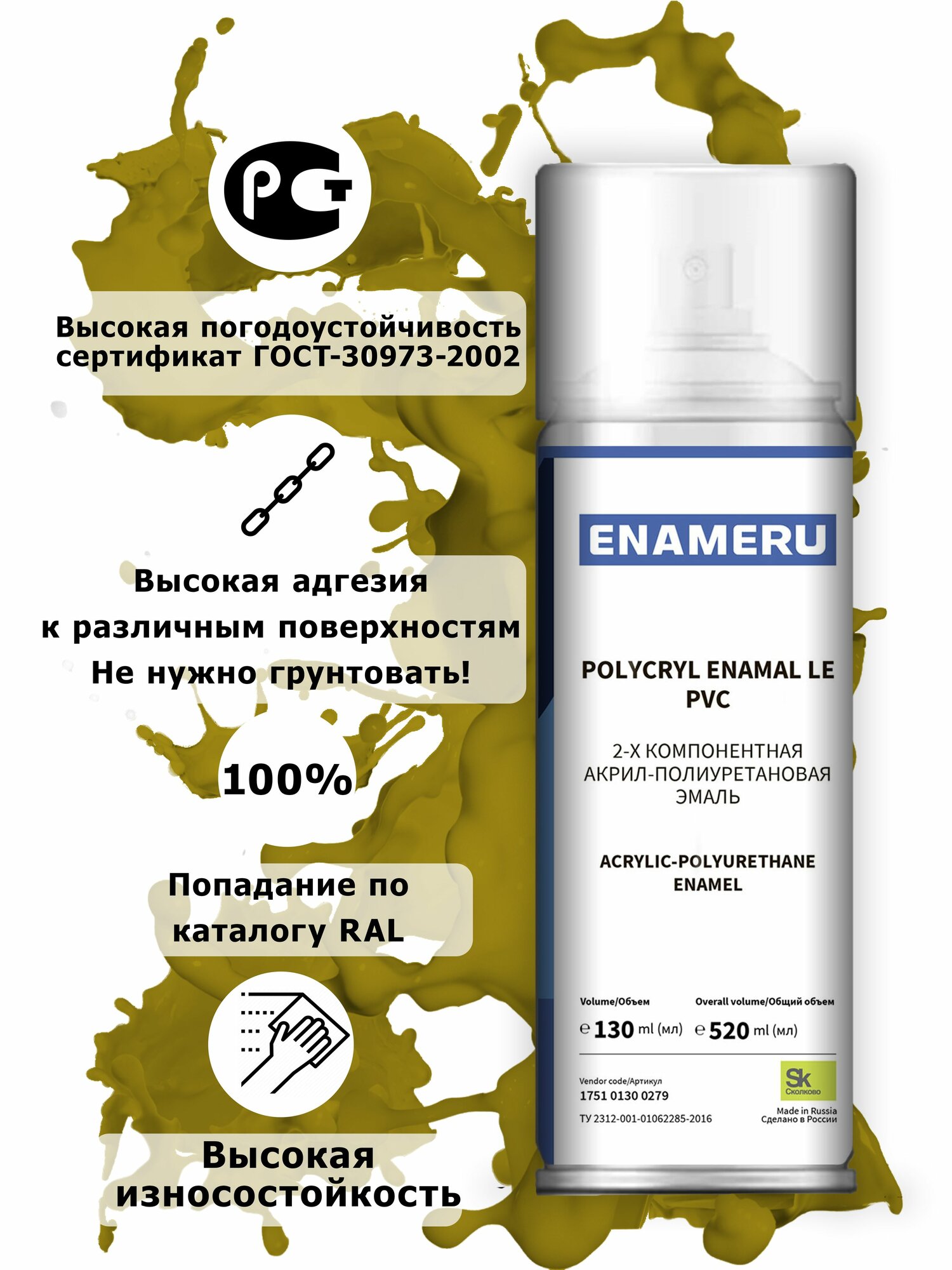 Аэрозольная краска для ПВХ, Пластика Энамеру, Акрил-полиуретановая, Полуматовая, Карри жёлтый RAL 1027, 0.52л информация:
