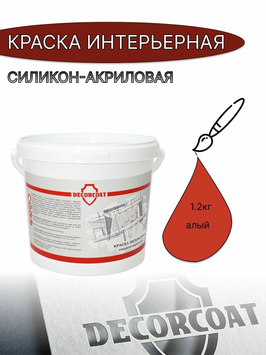 Краска Интерьерная Силикон-Акриловая DECORCOAT/ алый/ 1.2кг/ РАЛ 2002 информация: