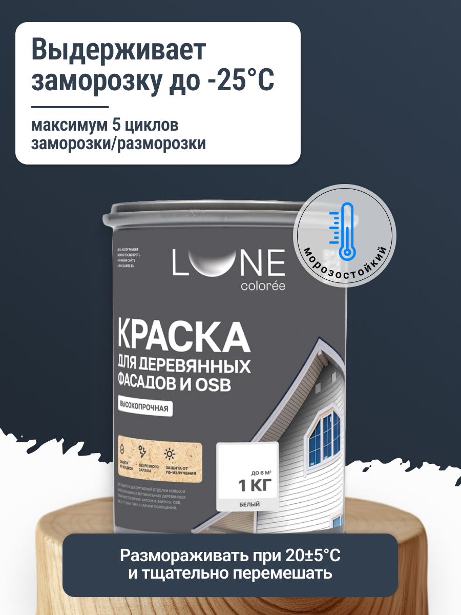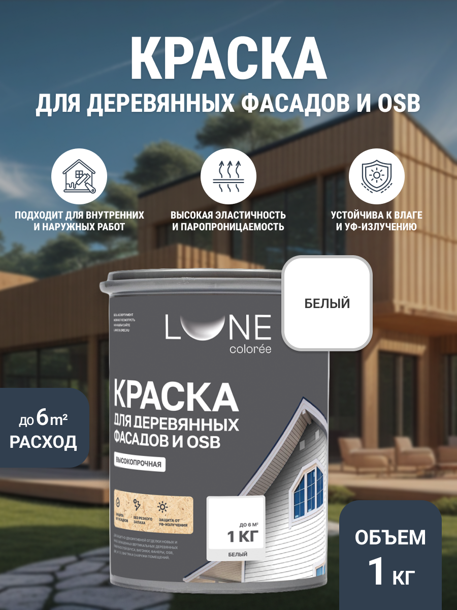 Краска для деревянных фасадов и OSB LUNE COLOREE цвет Белый 1кг (по 6шт) информация: