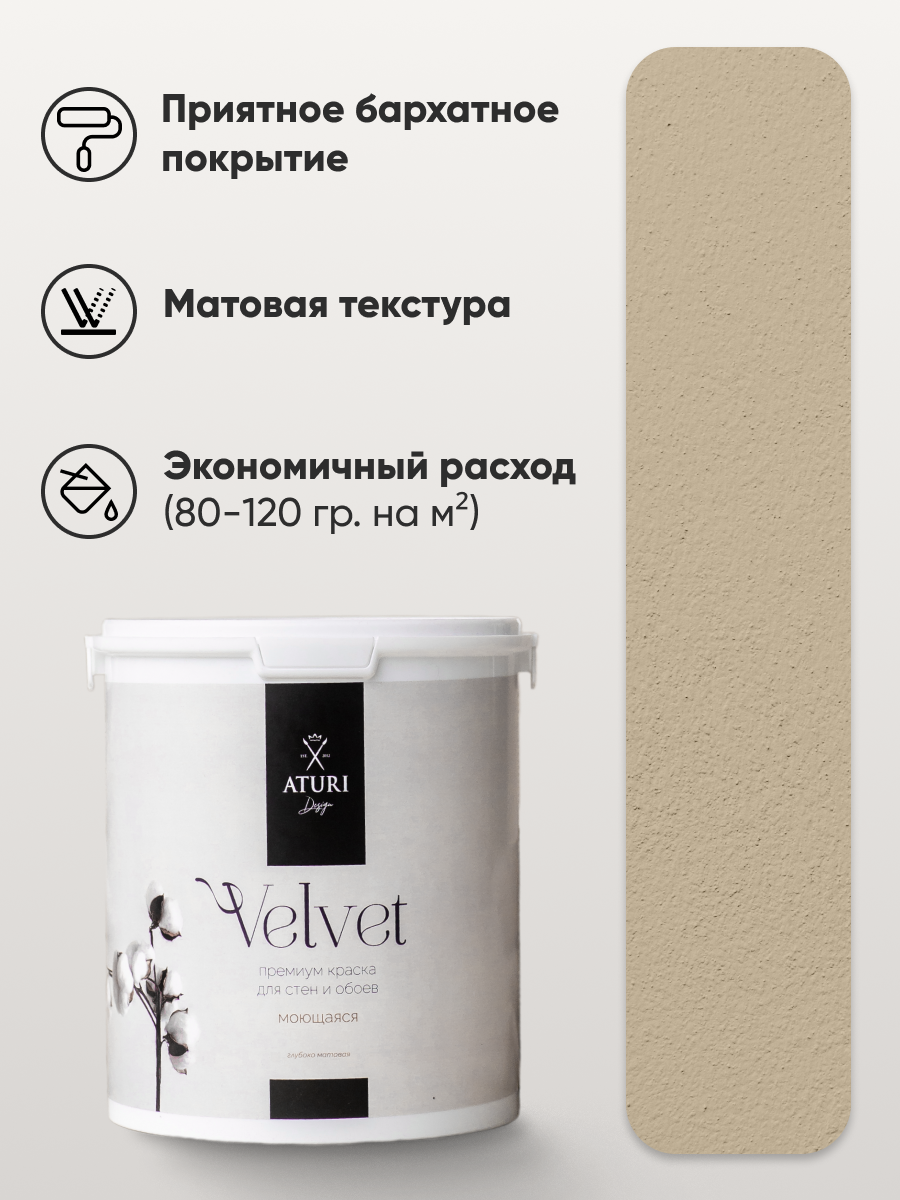 Краска для стен и обоев Aturi Design Velvet Цвет: Жемчужный бархат, бежевая 1,4 кг. интерьерная, без запаха, матовая 2 129 ₽