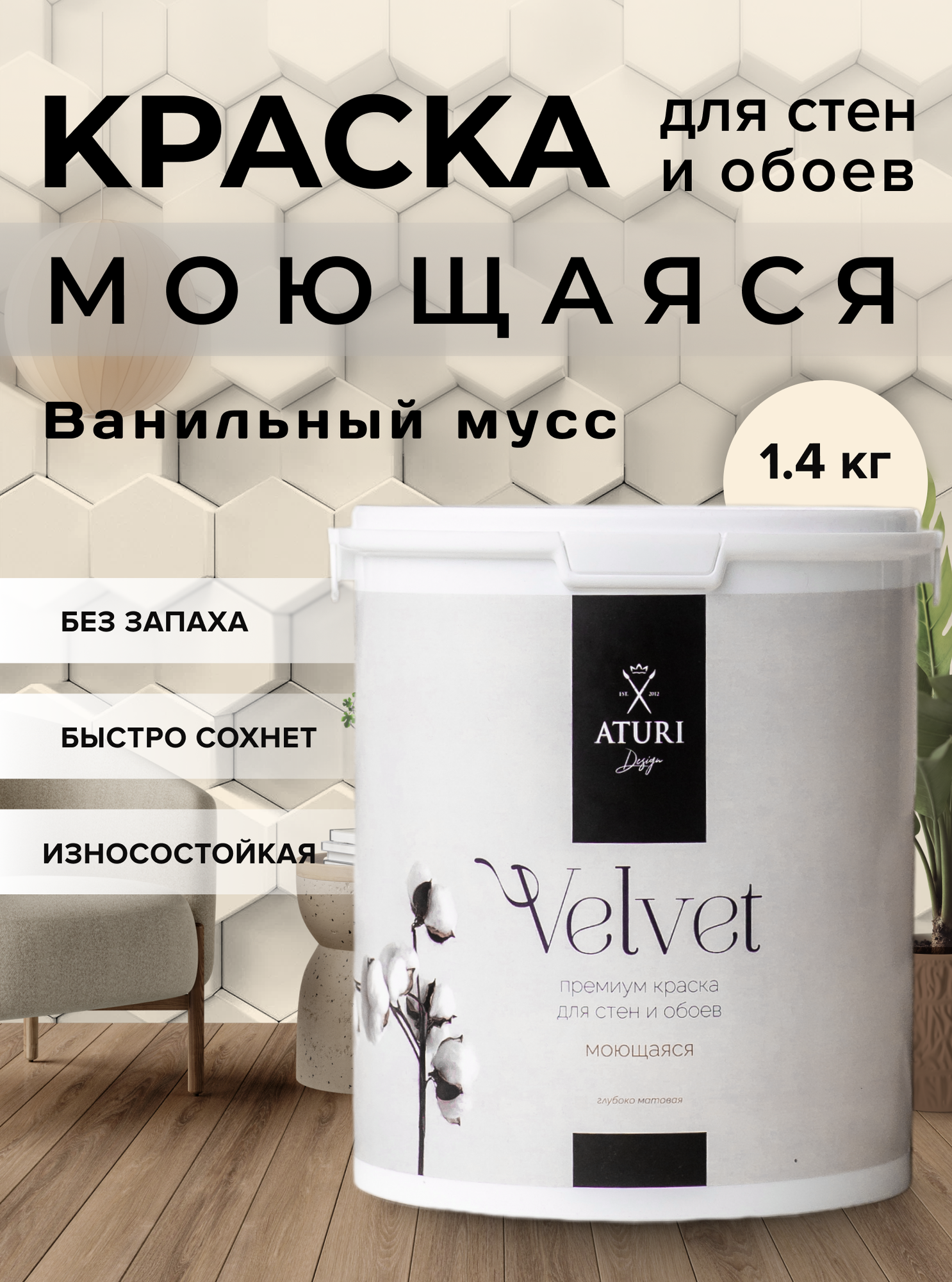 Краска Aturi Design Velvet интерьерная, для стен, моющаяся; Цвет: Ванильный мусс, 1,4 кг информация: