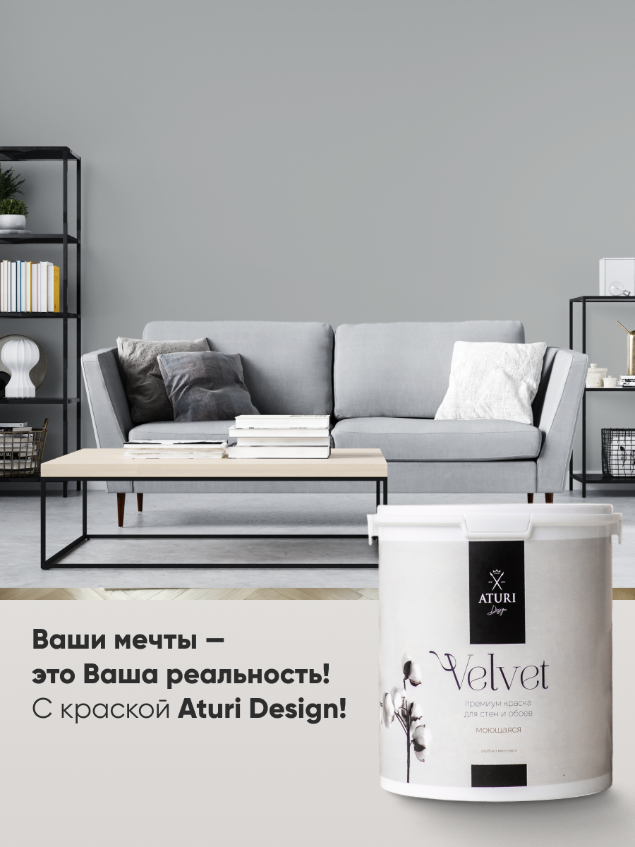 Краска интерьерная для стен и обоев Aturi Design Velvet Нежный пепел 1,4 кг, моющаяся, цветная матовая, серая информация: