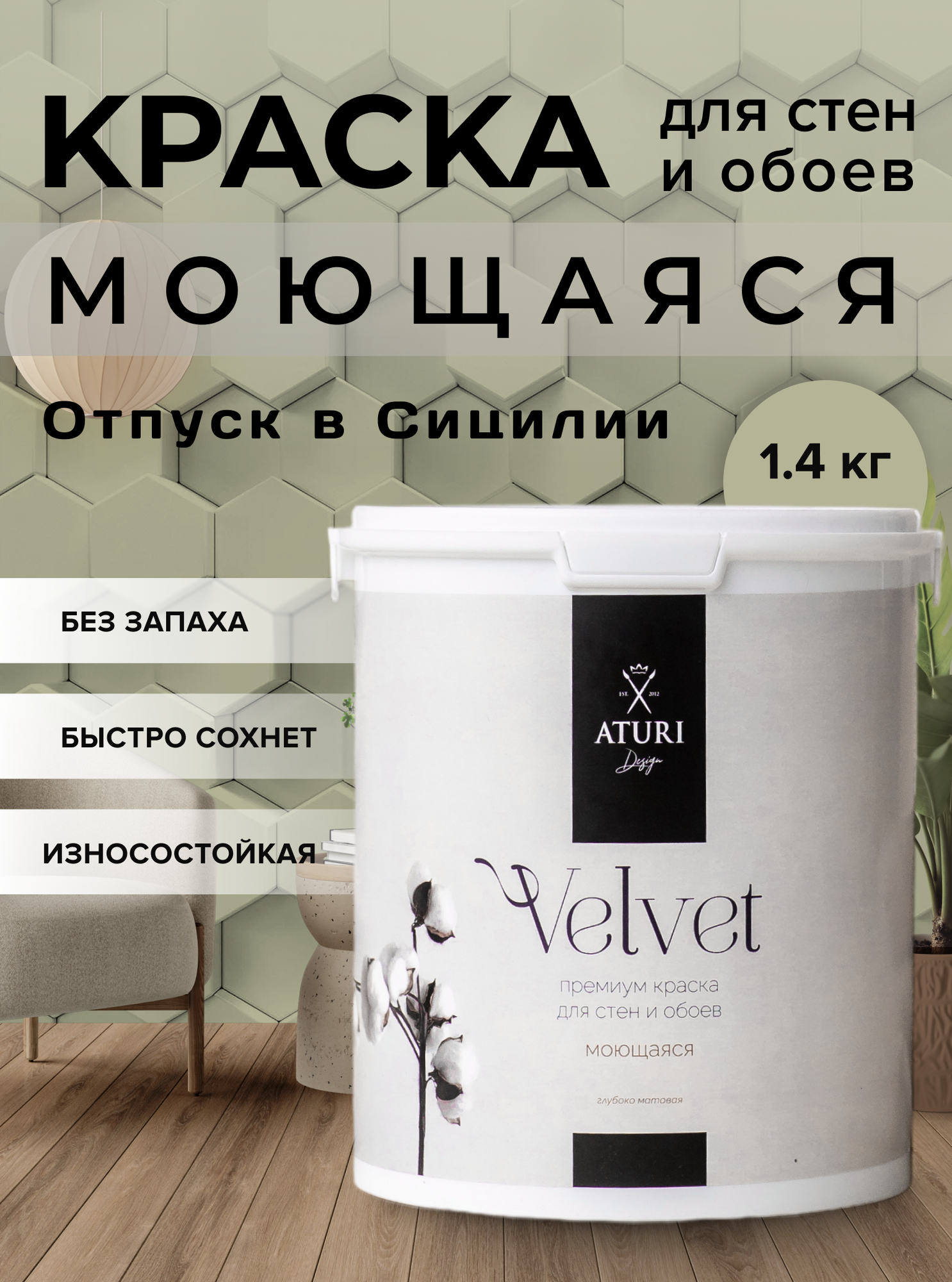 Краска Aturi Design Velvet интерьерная, для стен, моющаяся; Цвет: Отпуск в Сицилии, 1,4 кг информация:
