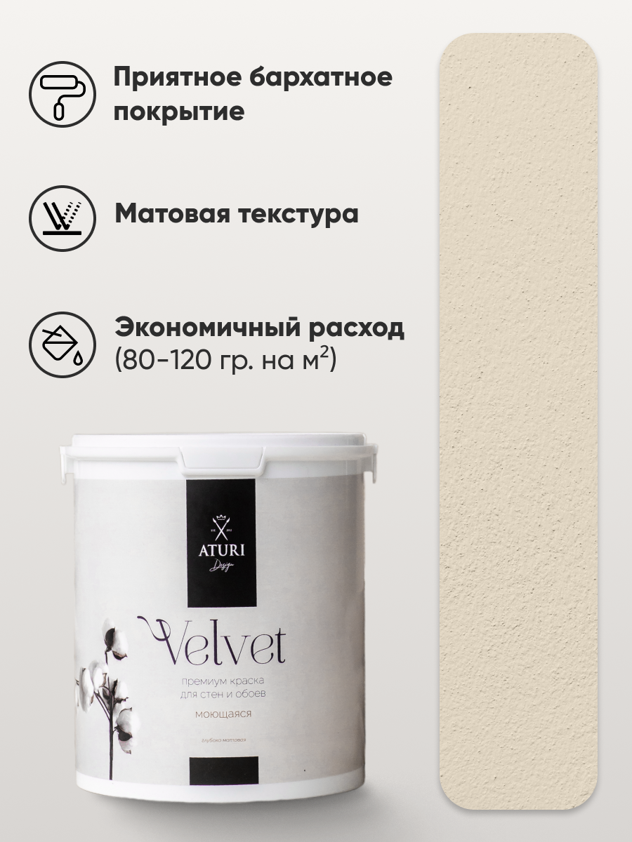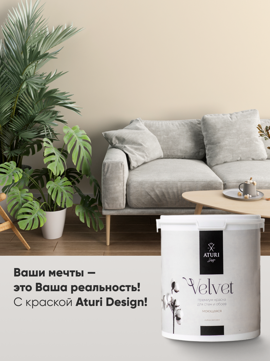 Краска для стен и обоев Aturi Design Velvet Цвет: Жемчужный бархат, бежевая 1,4 кг. интерьерная, без запаха, матовая 2 129 ₽