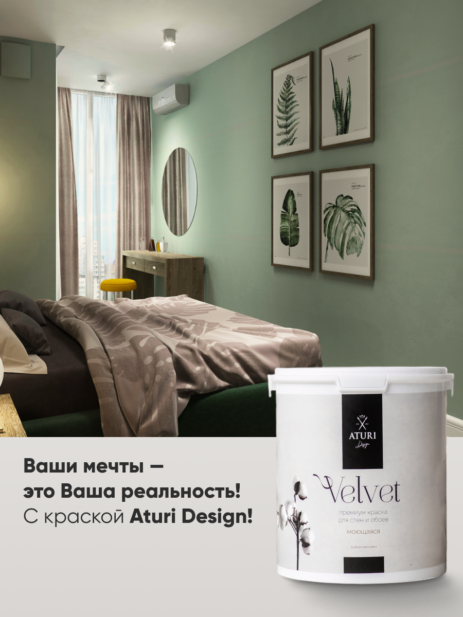 Краска Aturi Design Velvet интерьерная, для стен, моющаяся; Цвет: Северная полынь, 1,2 кг 2 357 ₽