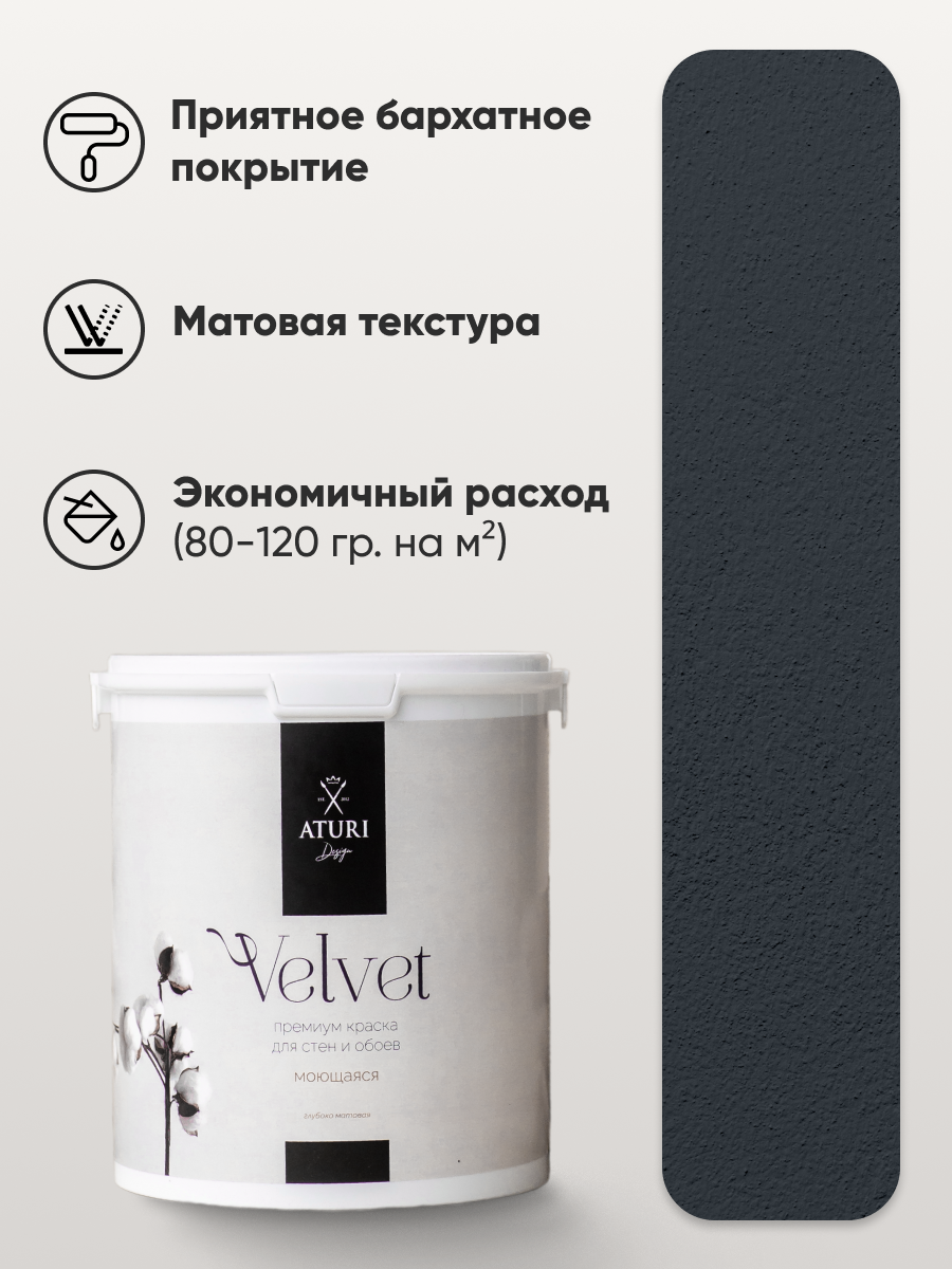Краска Aturi Design Velvet 1,4 кг, цвет: Графит, интерьерная, без запаха, моющаяся, матовая информация: