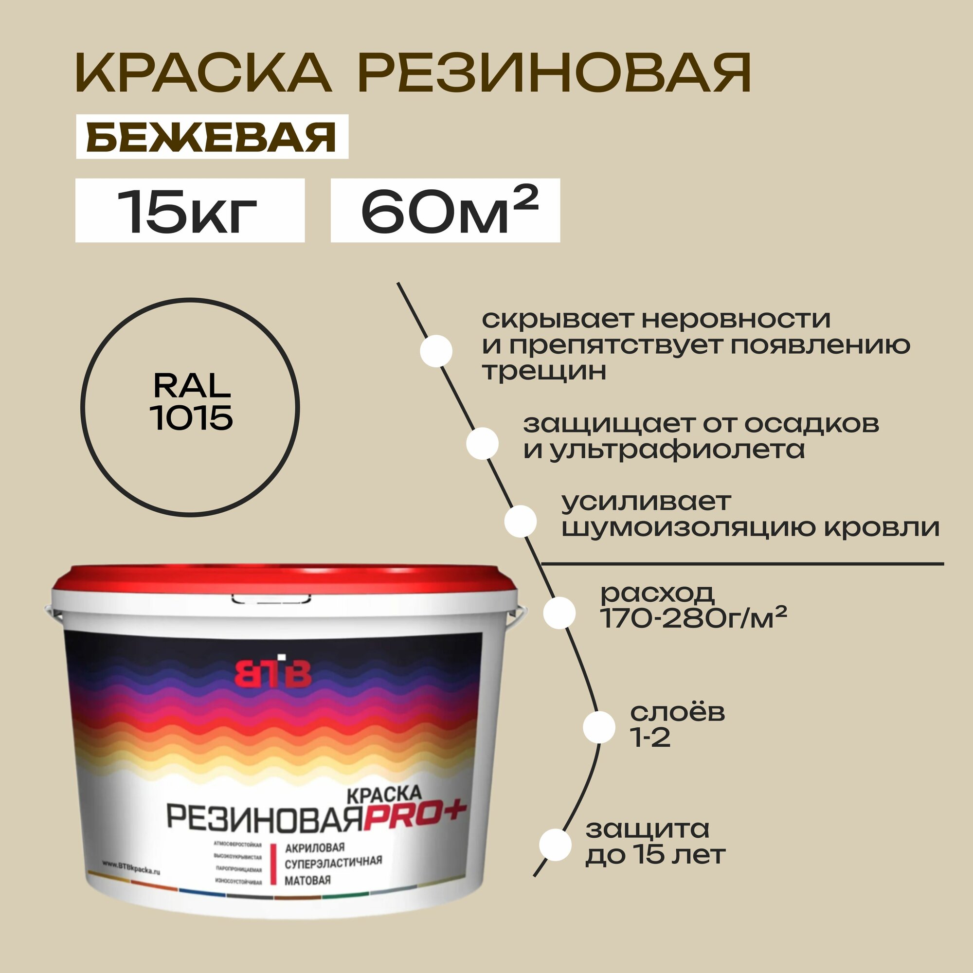 Краска резиновая ВТВ, бежевая, 15 кг информация: