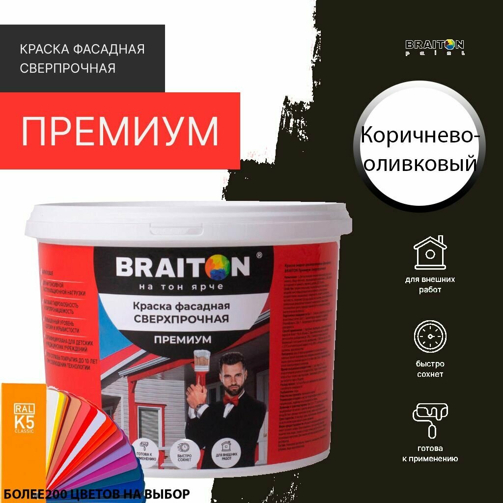 Краска ВД фасадная BRAITON Премиум Сверхпрочная 4 кг. Цвет Оливково-коричневый RAL 8008 4 418 ₽