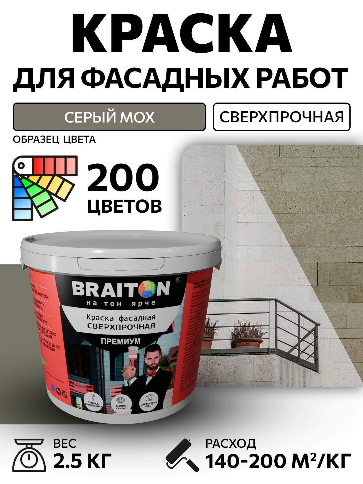 10 цен на Краска ВД фасадная BRAITON Премиум Сверхпрочная 2,5 кг. Цвет Серый мох RAL 7003 для наружных и внутренних работ для дерева по бетону, для минеральных поверхностей и штукатурке,