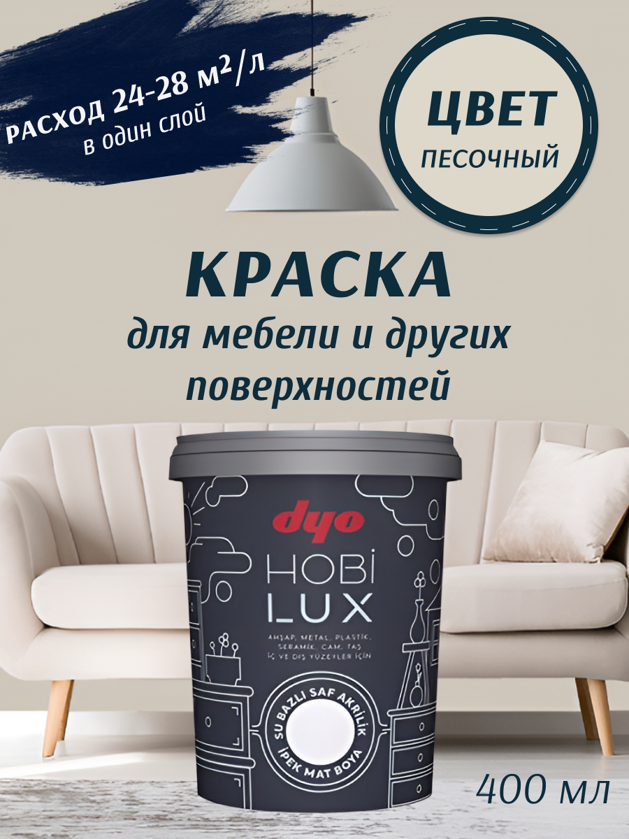 Краска "Dyo" шелковисто-матовая, для любых поверхностей "HOBILUX" цвет песочный 0,4л информация: