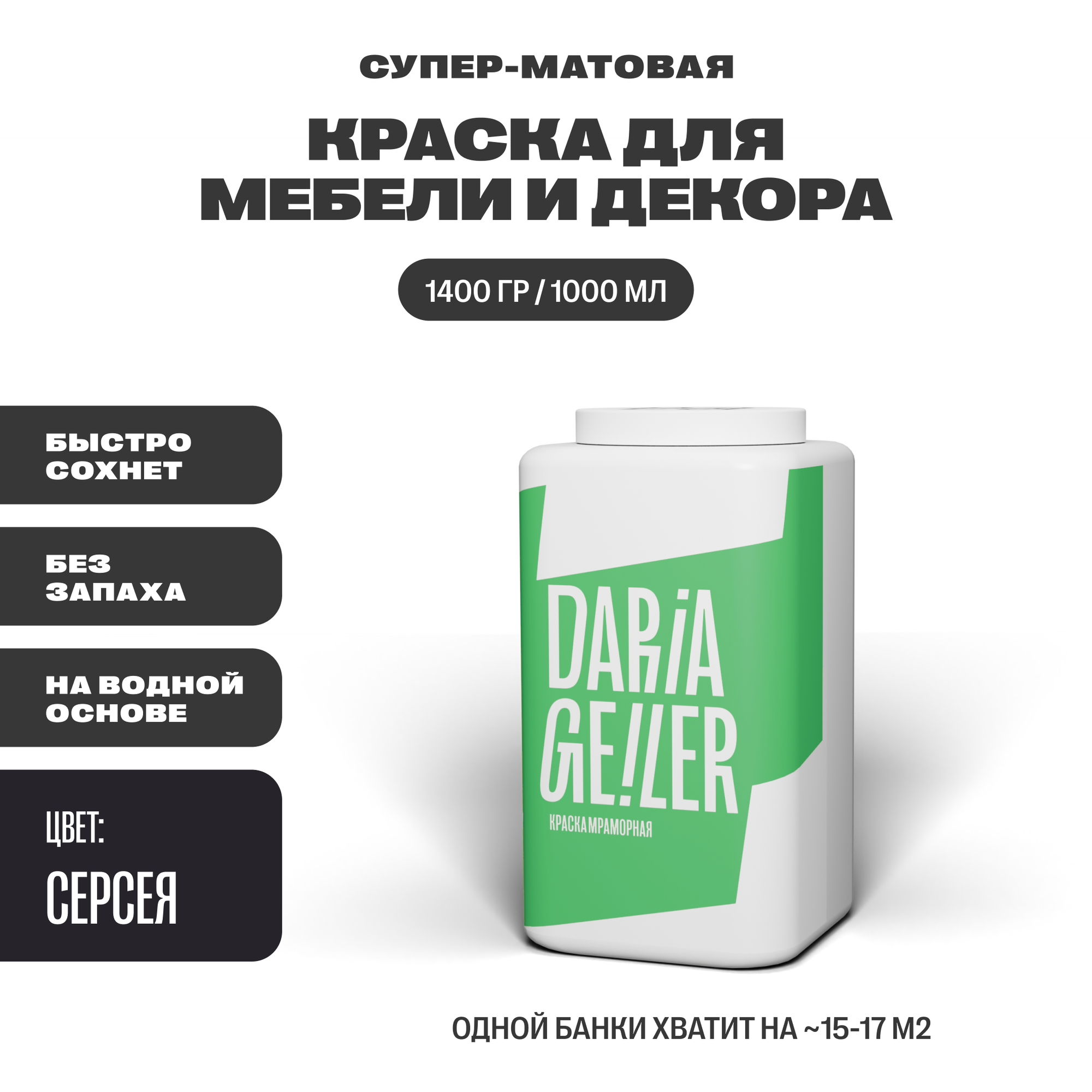 Мраморная краска для мебели Дарья Гейлер "Серсея" 1000 мл, мебельная краска по дереву для стен Daria Geiler информация: