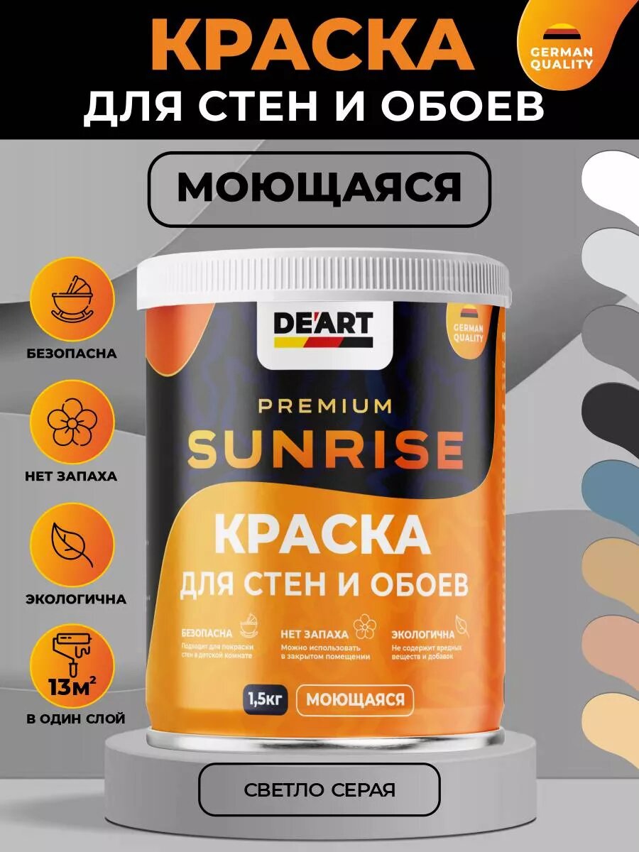 Водоэмульсионная краска для стен и обоев моющаяся, светло-серая 1.5кг информация: