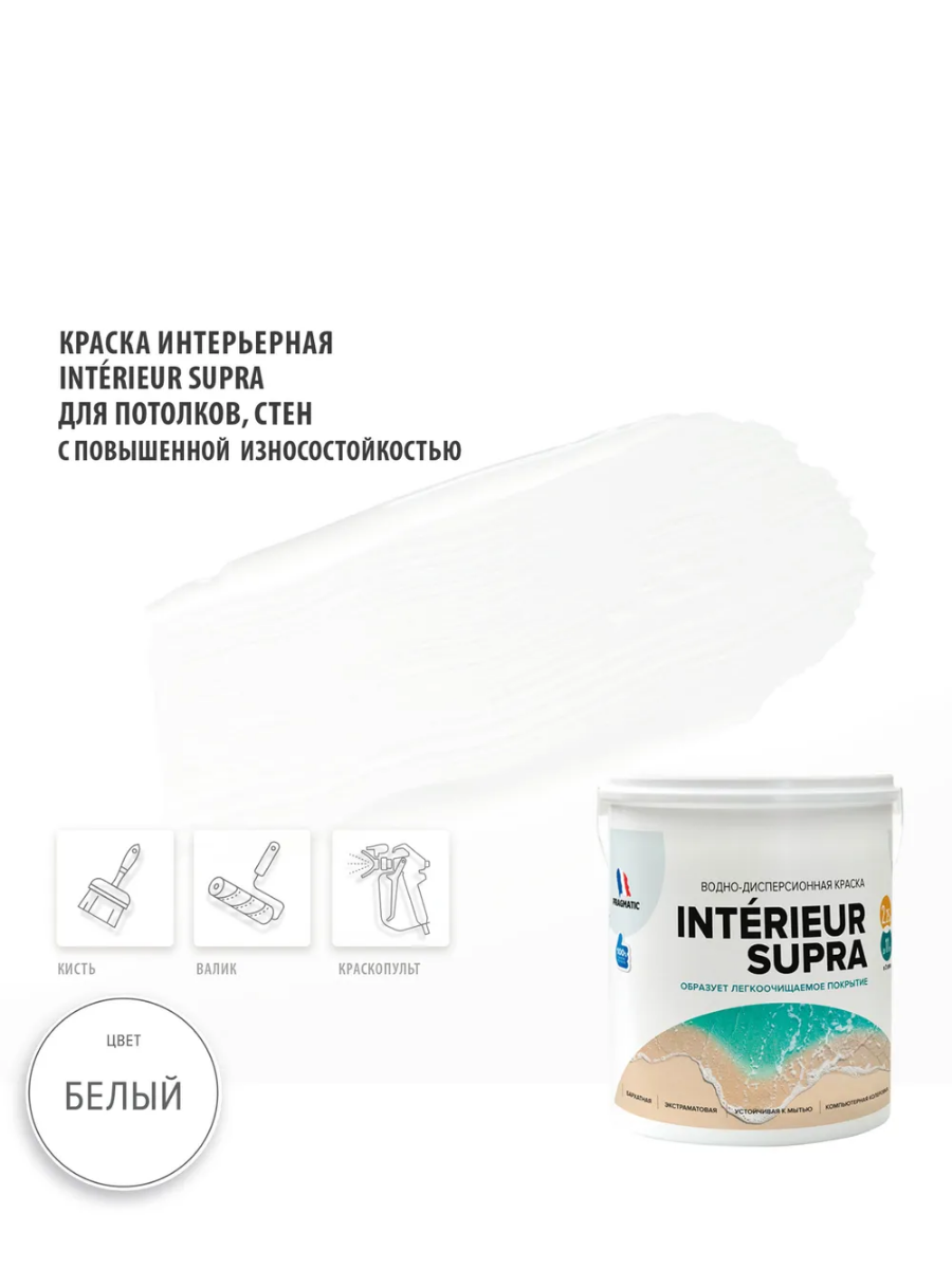 10 цен на INTERIEUR SUPRA водоэмульсионная экстраматовая краска для стен и потолков, моющаяся, 0.9 л цвет Белый или под колеровку