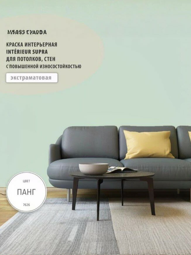 INTERIEUR SUPRA водоэмульсионная экстраматовая краска для стен и потолков, моющаяся, 0.9 л цвет Светло зеленый 7626 информация:
