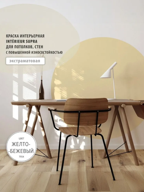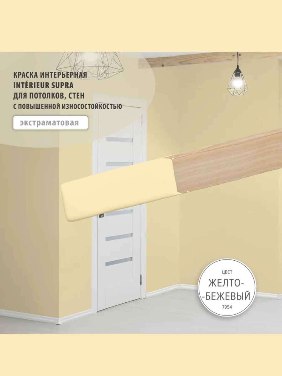 INTERIEUR SUPRA водоэмульсионная экстраматовая краска для стен и потолков, моющаяся, 0.9 л цвет Светло желтый 7954 информация: