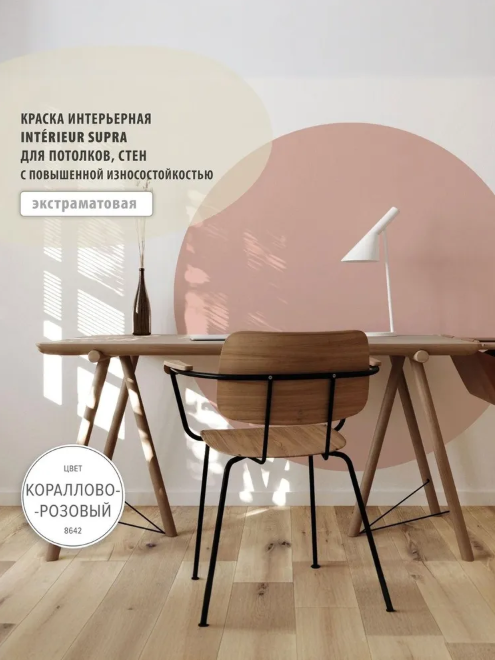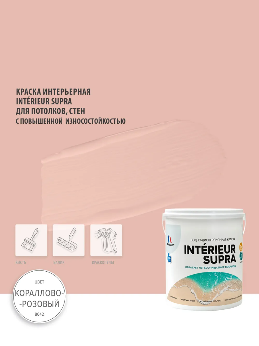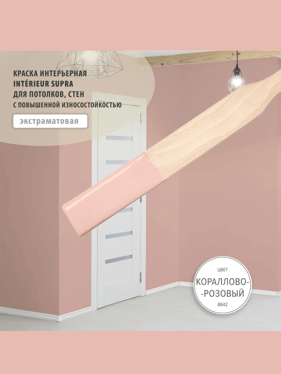 INTERIEUR SUPRA водоэмульсионная экстраматовая краска для стен и потолков, моющаяся, 0.9 л цвет Коралловый 8642 информация:
