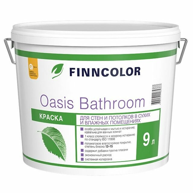 Краска для влажных помещений Finncolor Oasis Bathroom (Оазис Басрум) 9л белый (база А) 8 310 ₽