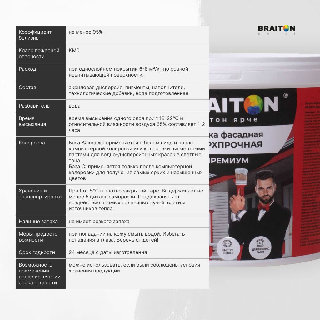 10 цен на Краска ВД фасадная BRAITON Премиум Сверхпрочная 5 кг. Цвет Пыльно-серый RAL 7037