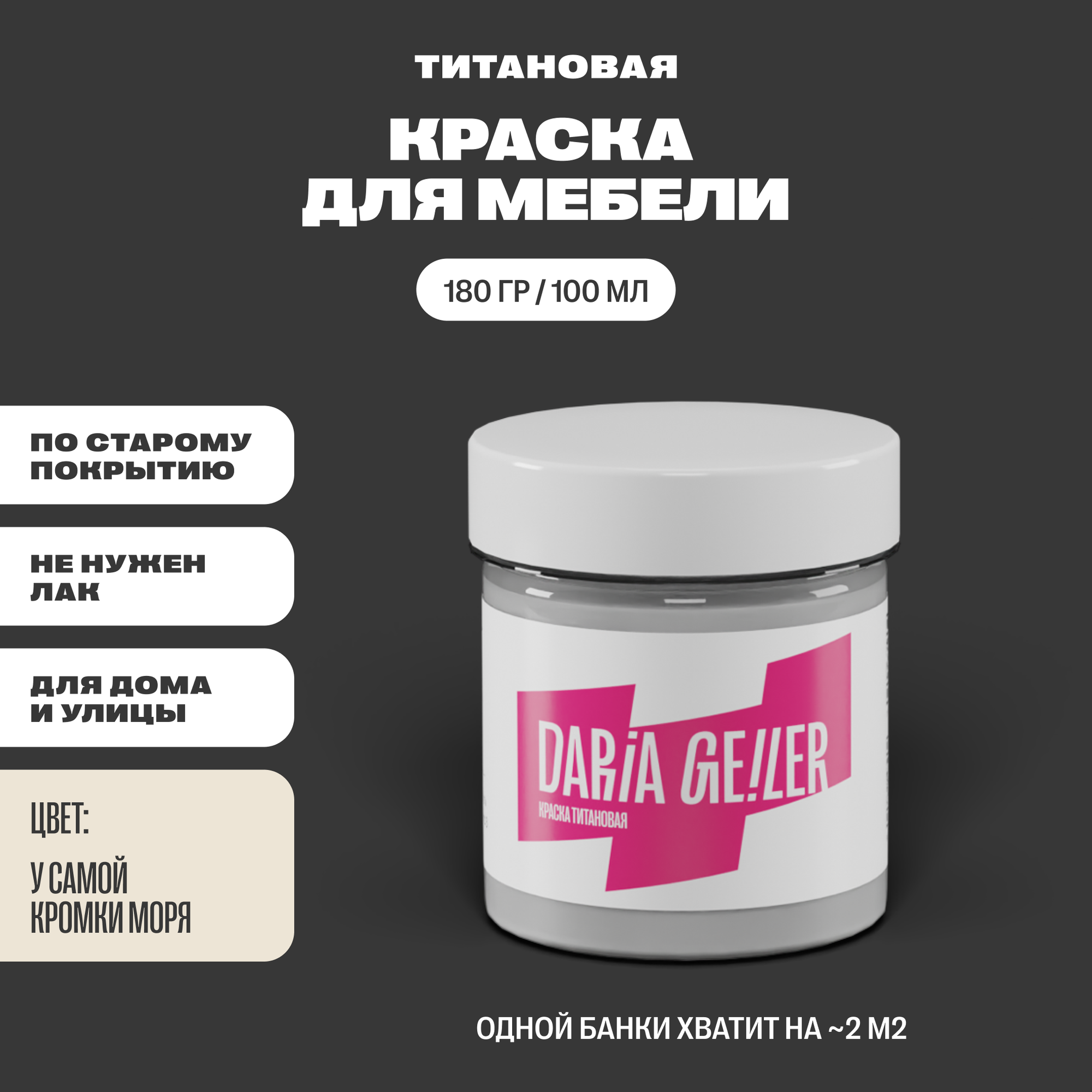 DARIA GEILER краска для мебели титановая Дарья Гейлер "У самой кромки моря" 100 мл, водная, матовое покрытие, бежевая информация: