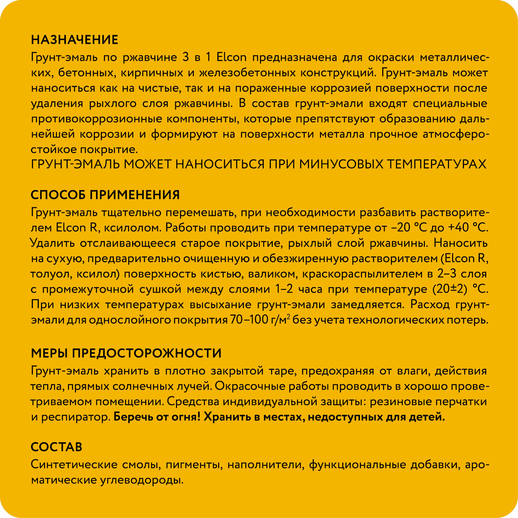 Грунт-эмаль по ржавчине Elcon 3 в 1 желтая 2кг. информация: