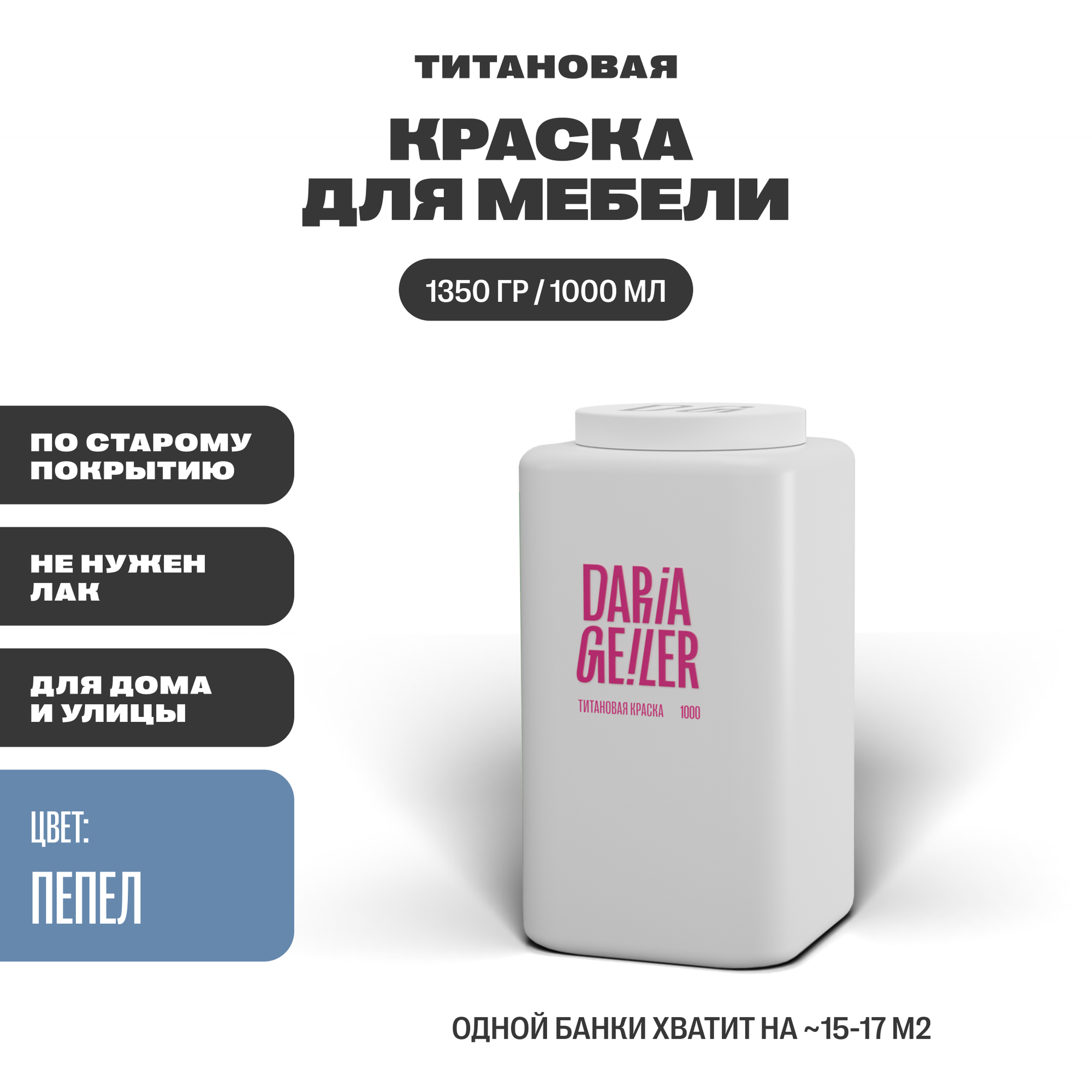 Отзывы на DARIA GEILER краска для мебели титановая Дарья Гейлер "пепел" 1000 мл, водная, матовое покрытие, светло-синяя
