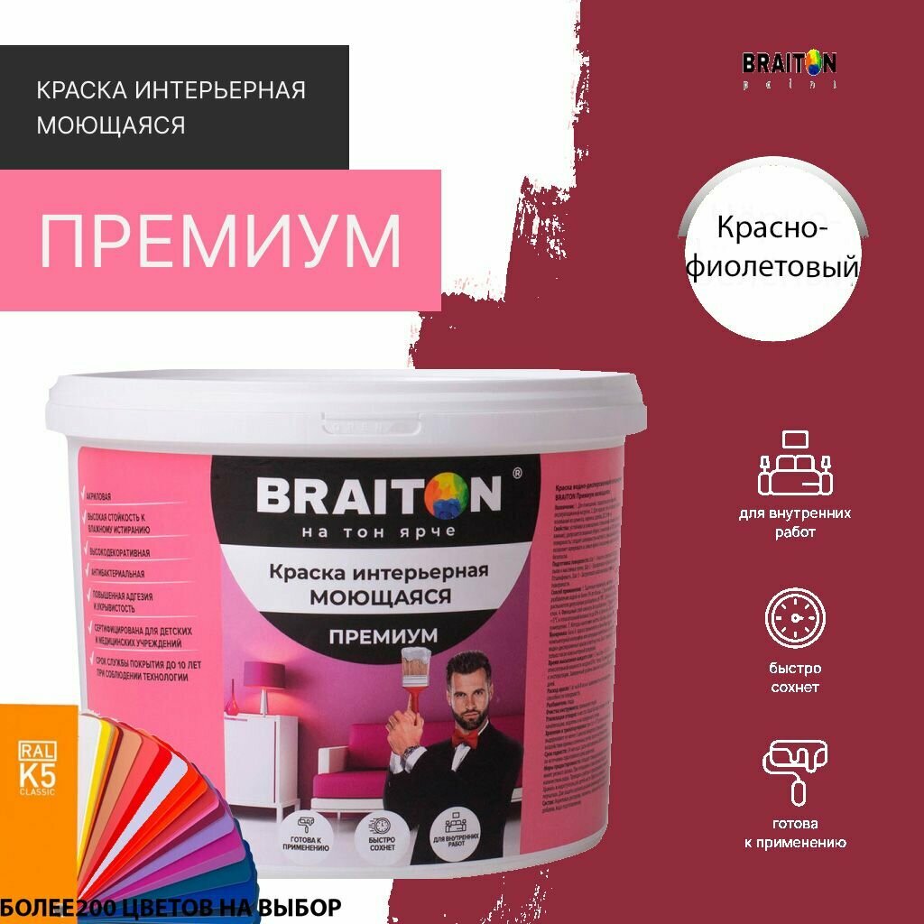 Краска ВД интерьерная BRAITON Премиум Моющаяся 4 кг. Цвет Красно-фиолетовый RAL 4002 информация: