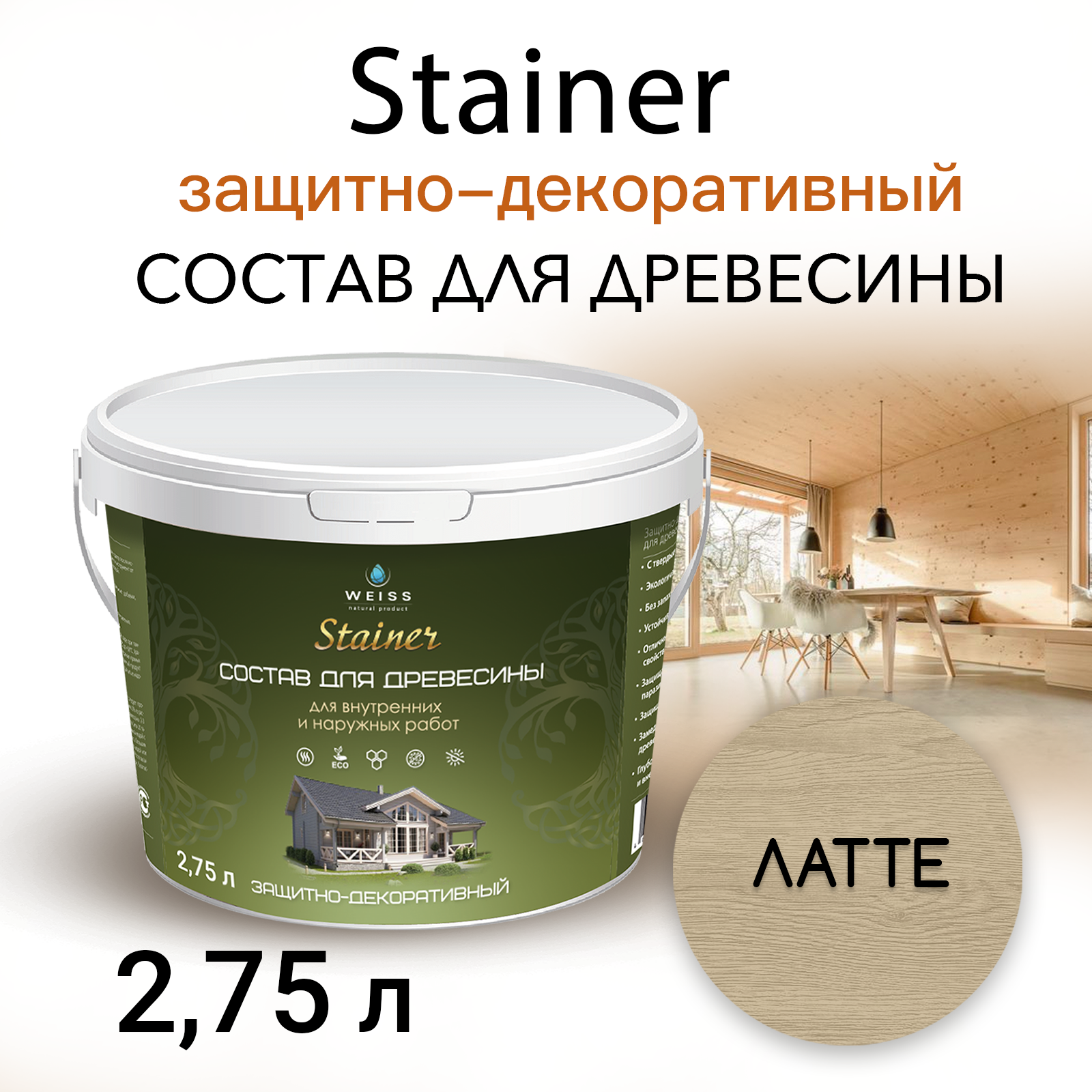 Stainer 2.75л Латте 5061, Защитно-декоративный состав для дерева и древесины, Стайнер, пропитка, защитная лазурь информация: