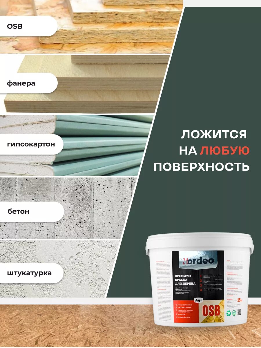 Краска для дерева и OSB, цвет RAL 7004 Светло-пепельный 15кг 8 925 ₽