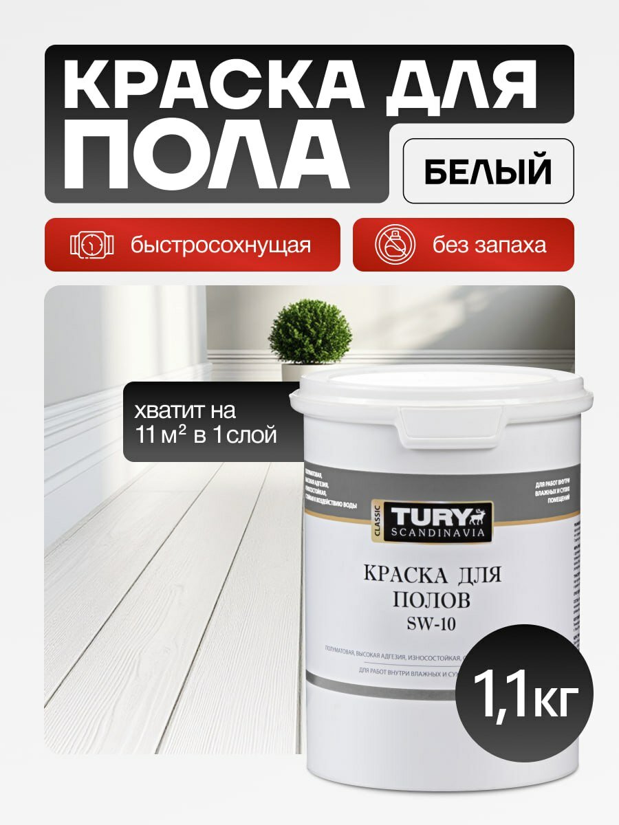 Краска для пола TURY без запаха быстросохнущая, белая, 1,1 кг информация: