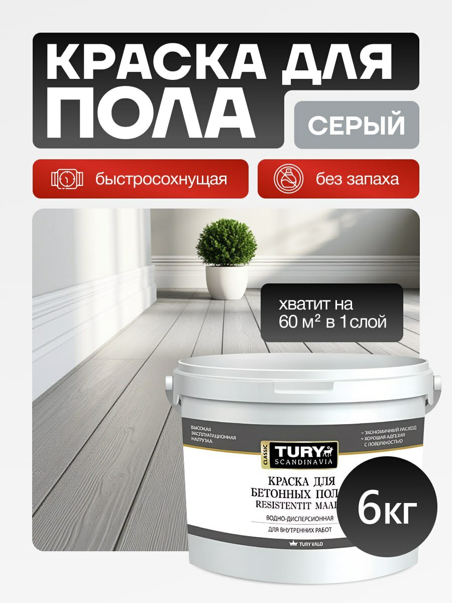 Отзывы на Краска TURY SW-10, для пола и стен, быстросохнущая, серая, без запаха, 6кг