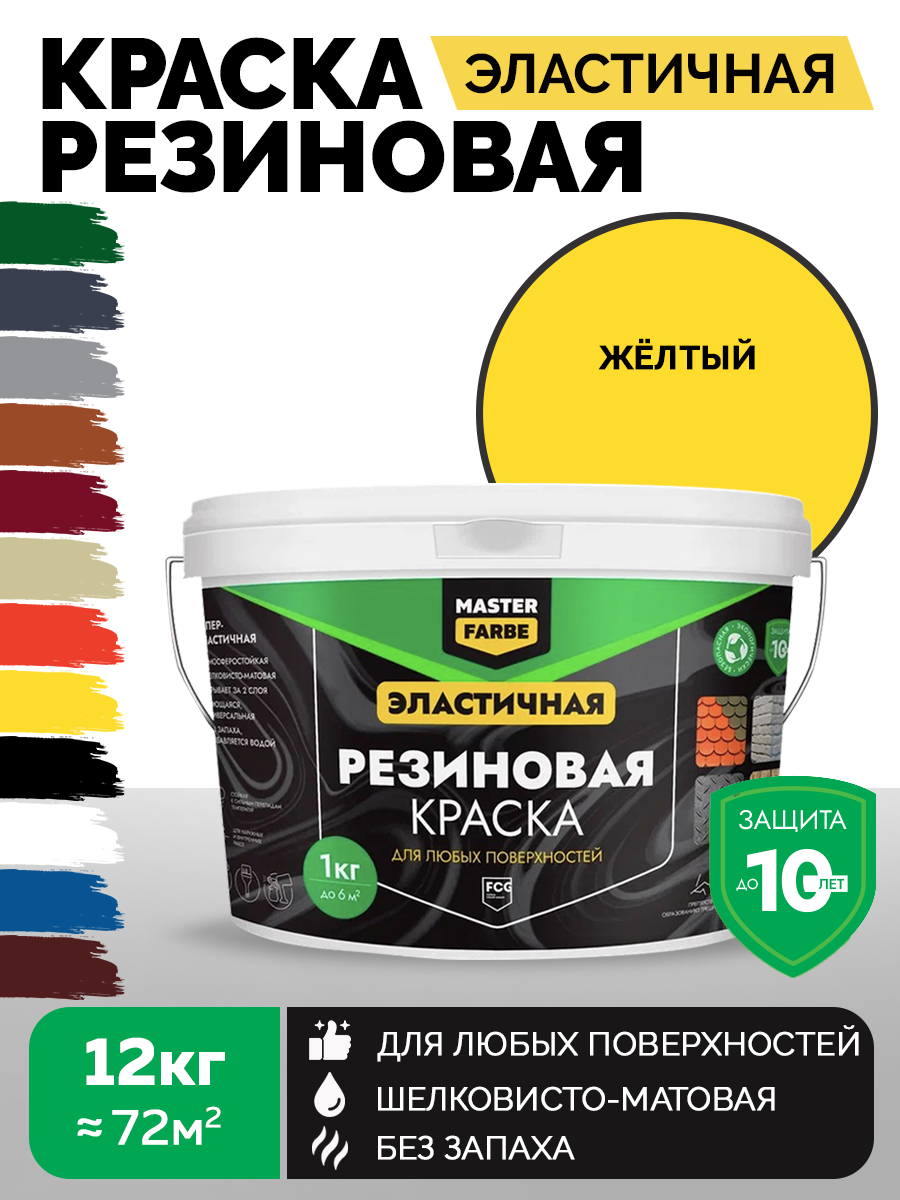 10 цен на Резиновая краска Masterfarbe, для внешних и внутренних работ, для бетона, дерева, металла, желтый, 12кг